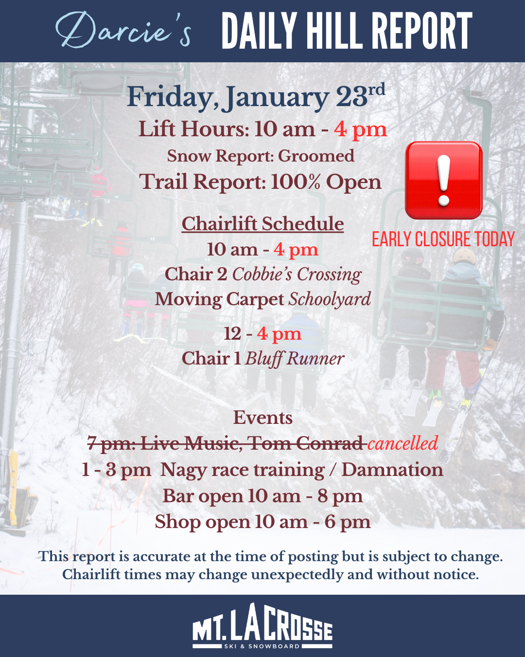 Early Closure for Friday, 1/23