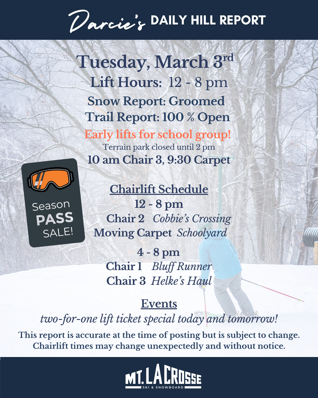 We’re offering 2-for-1 Lift Tickets on Tuesday and Wednesday, this week only!
